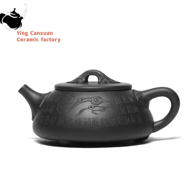 290ml Chinese Yixing Purple Clay Teapot Master Hand-carved Stone Scoop Tea Pot Handmade Kettle Authentic Zisha Tea Set Gifts