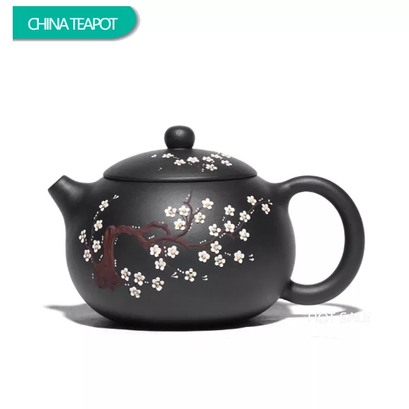 400ml Classic Yixing Purple Clay Teapot Raw Ore Black Mud Xishi Tea Pot Zisha High Capacity Plum Bossom Tea Kettle Home Tea Set