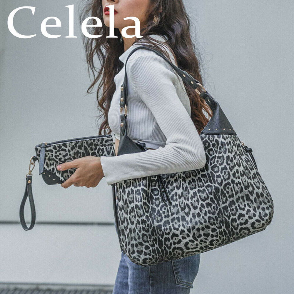 Celela Women Concealed Carry Handbag Pattern Studs Hobo Shoulder Bag W/ Purse