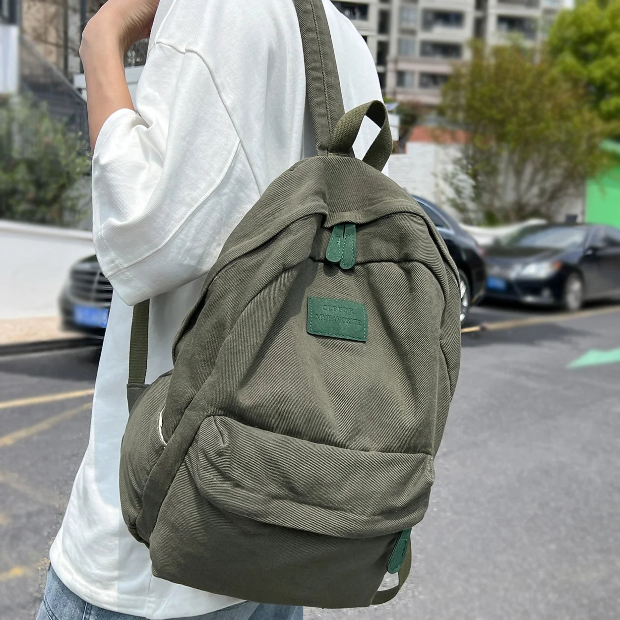 Women Canvas Green Vintage College Backpack Cool Lady Retro Female Laptop Book Bag Fashion Girl Kawaii Travel School Bags Trendy