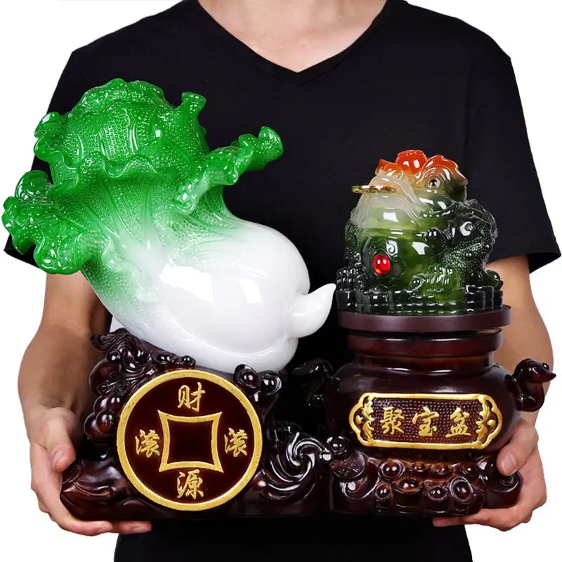 Fortune Jade Cabbage Golden Toad Decoration Large Poly Treasure Craft Gift Opening Cashiers Table Bar Furnishings Decor
