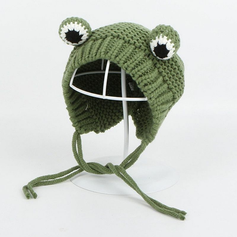 Knitted Hat Solid Color Cartoon Frog Winter Warm Skullies Cap Beanie Kids Unisex