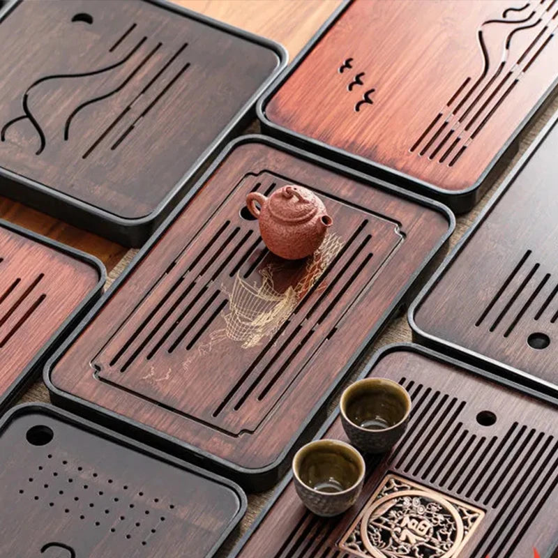 Bamboo Kungfu Tea Tray New Household Simple Water Storage Japanese Rectangular Modern Tea Table Dry wet amphibious Tray Tea Gift