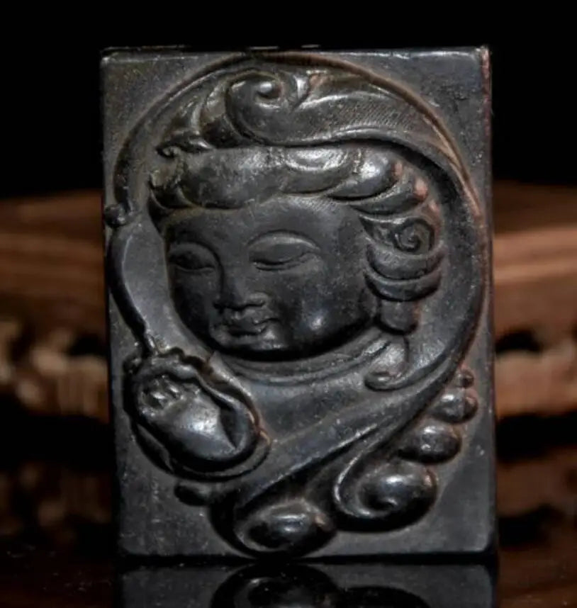 Hongshan culture archaize black iron meteorite Guanyin Head pendant amulet statue