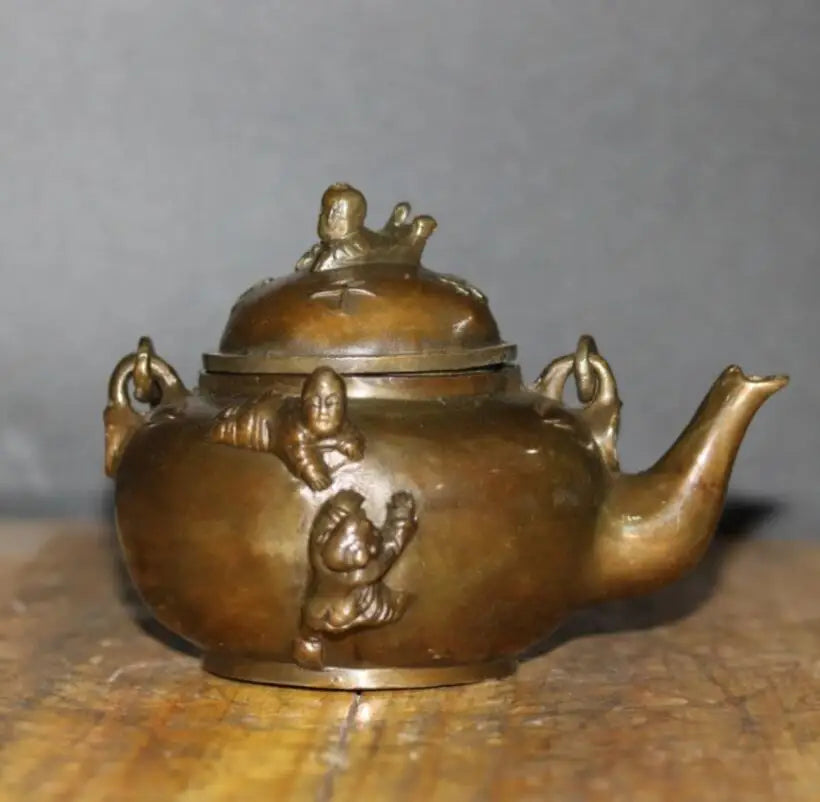 China brass archaize five child teapot crafts statue