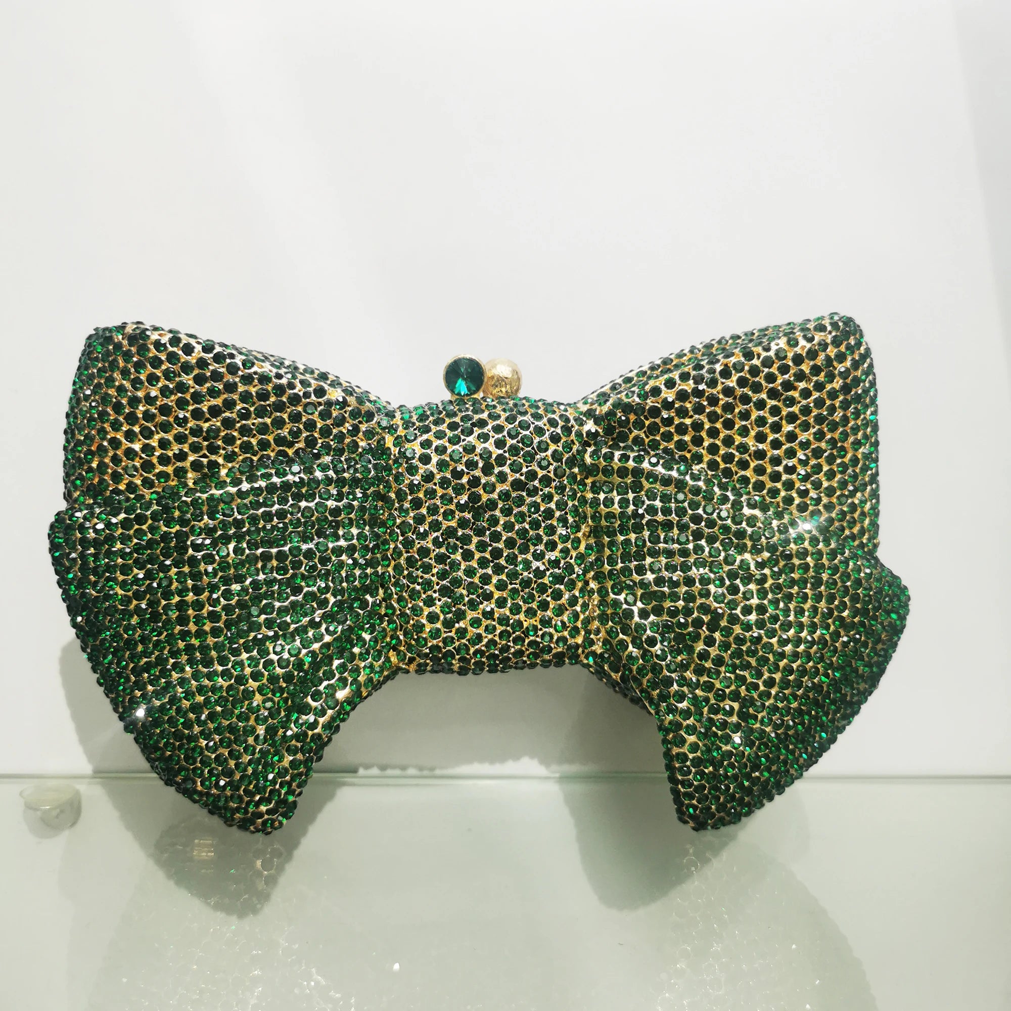 Woman Gold Blue Green Red AB Colorful Diamond Party Evening Bag Bow Shape Wedding Bridal Crystal Handbag Birthday Dinner Purse