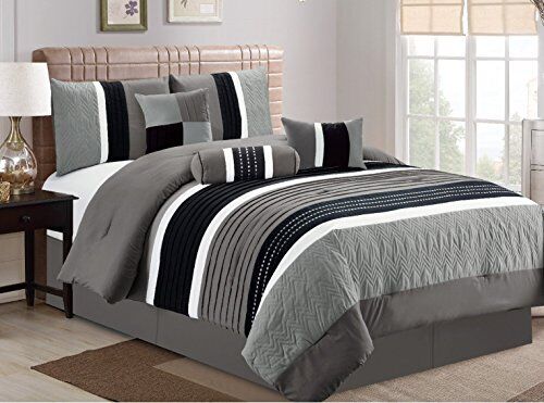 Esca 7 Piece Closeout Luxury Bed in Bag Comforter Set, Queen, Grey