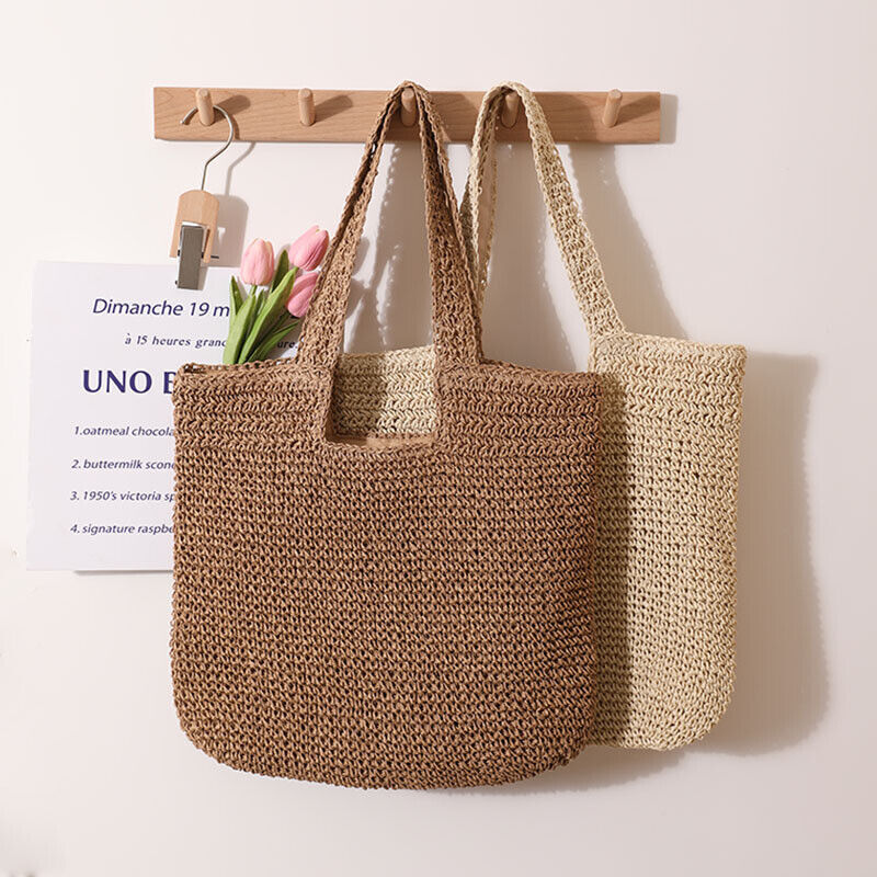 Versatile Large Straw Bag Hand-Crocheted Woven Portable One-Shoulder Beach Bag
