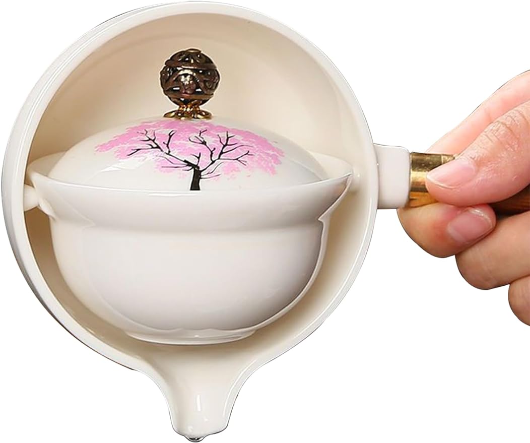 Chinese Ceramic Teapot, Portable Teapot with Side Handle 360° Teapot Ceramic Single Pot Household Filter Tea Maker Creative Side Pot for Travel, Home, Gifting, Office