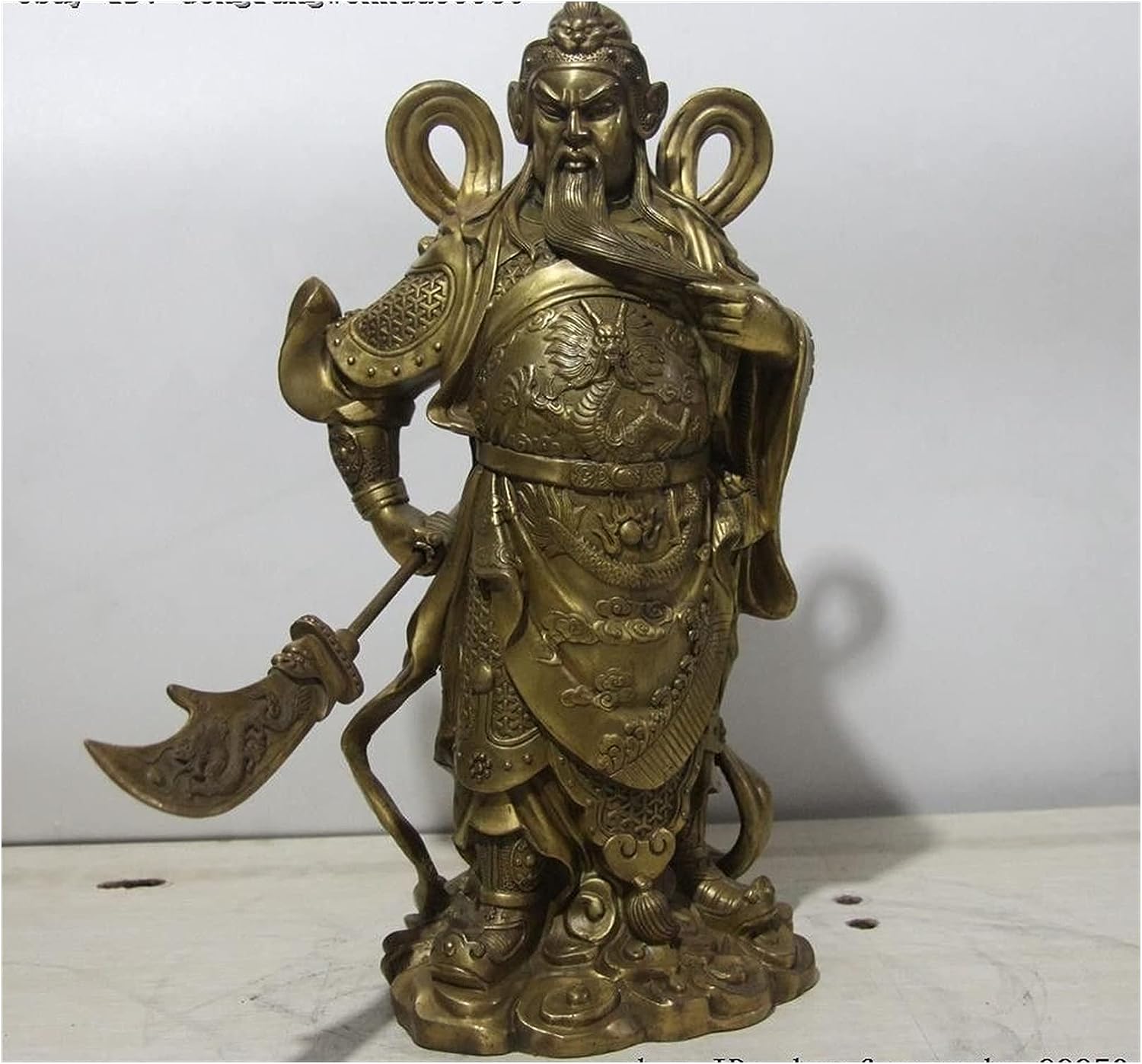 WJCRYPD Buddha Brass Bronze Dragon Guangong Guan Gong Yu Hold Knife Statue Buddha Statue SurongL