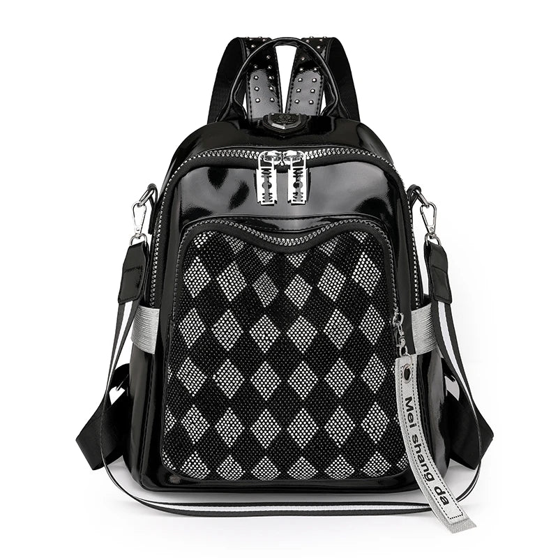 Fashionable Trendy Women's Backpack With Diamond Grid for Female Single Shoulder Bag High Quality Soft Leather Girl School Bags