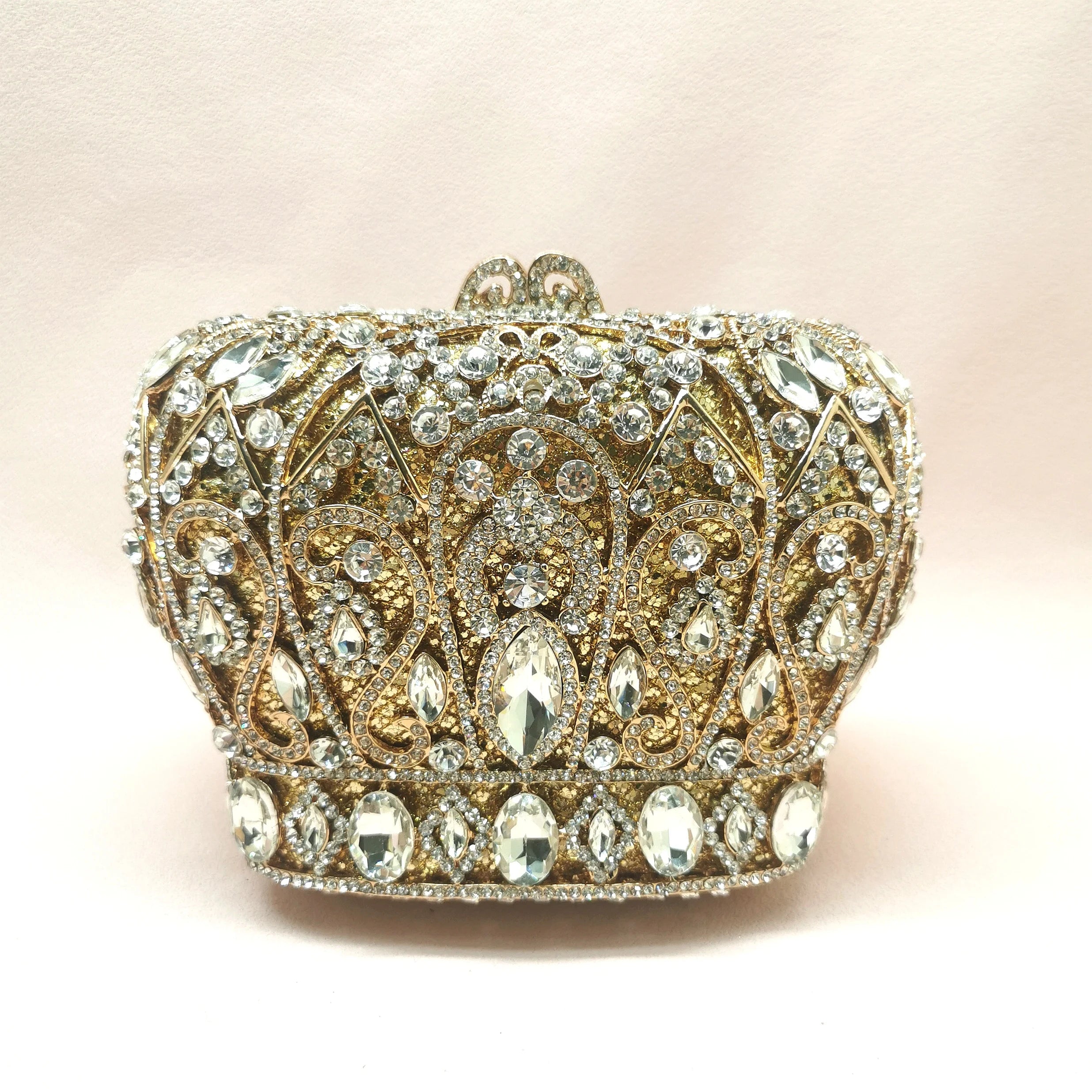 Hollow Out Gold Colorful Crown Lady Gift Purse Woman Diamond Bridal Dinner Stone Handbag Crystal Wedding Party Prom Evening Bag