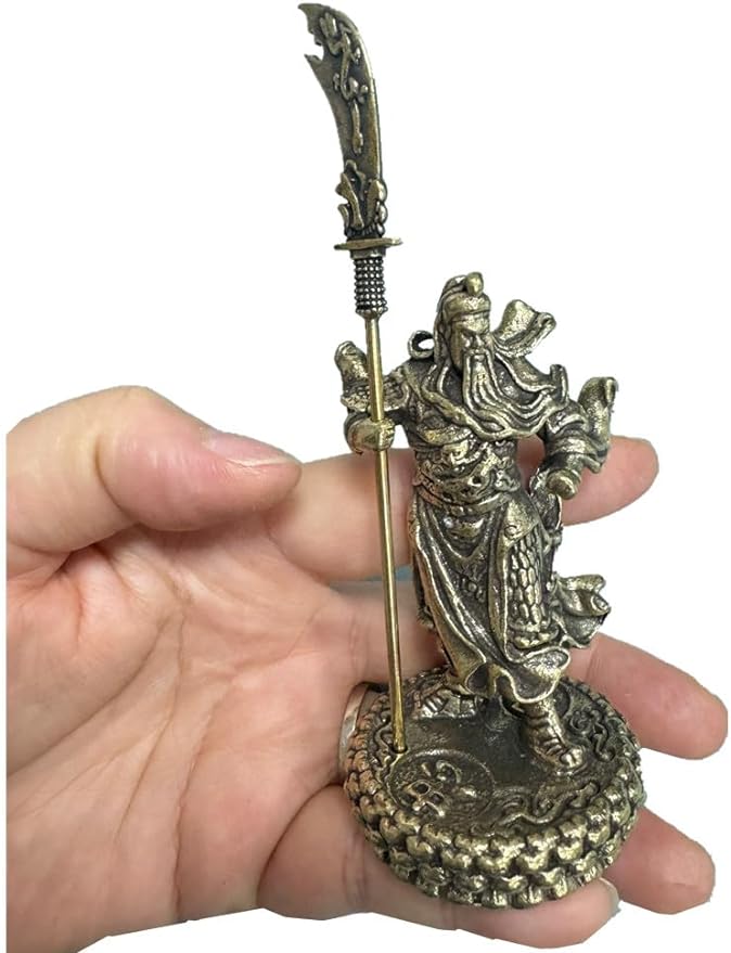 Vintage Brass Laughing Buddha Statue,Solid Metal Mini Chinese Fengshui Figurine Garden Dollhouse Collection Lucky Ornaments for Desk Decor,Car Attracting Money Wealth&Success (Brass -Guan Yu)