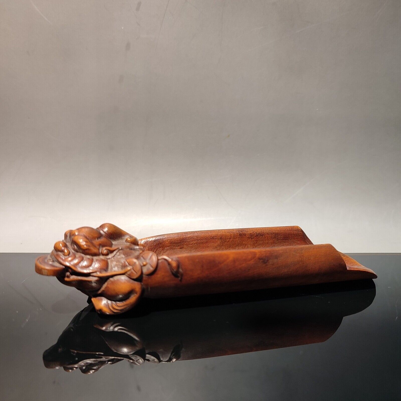 Fine wood carved decor Boxwood wooden statue carvings Tea shovel Tea Toad gifts