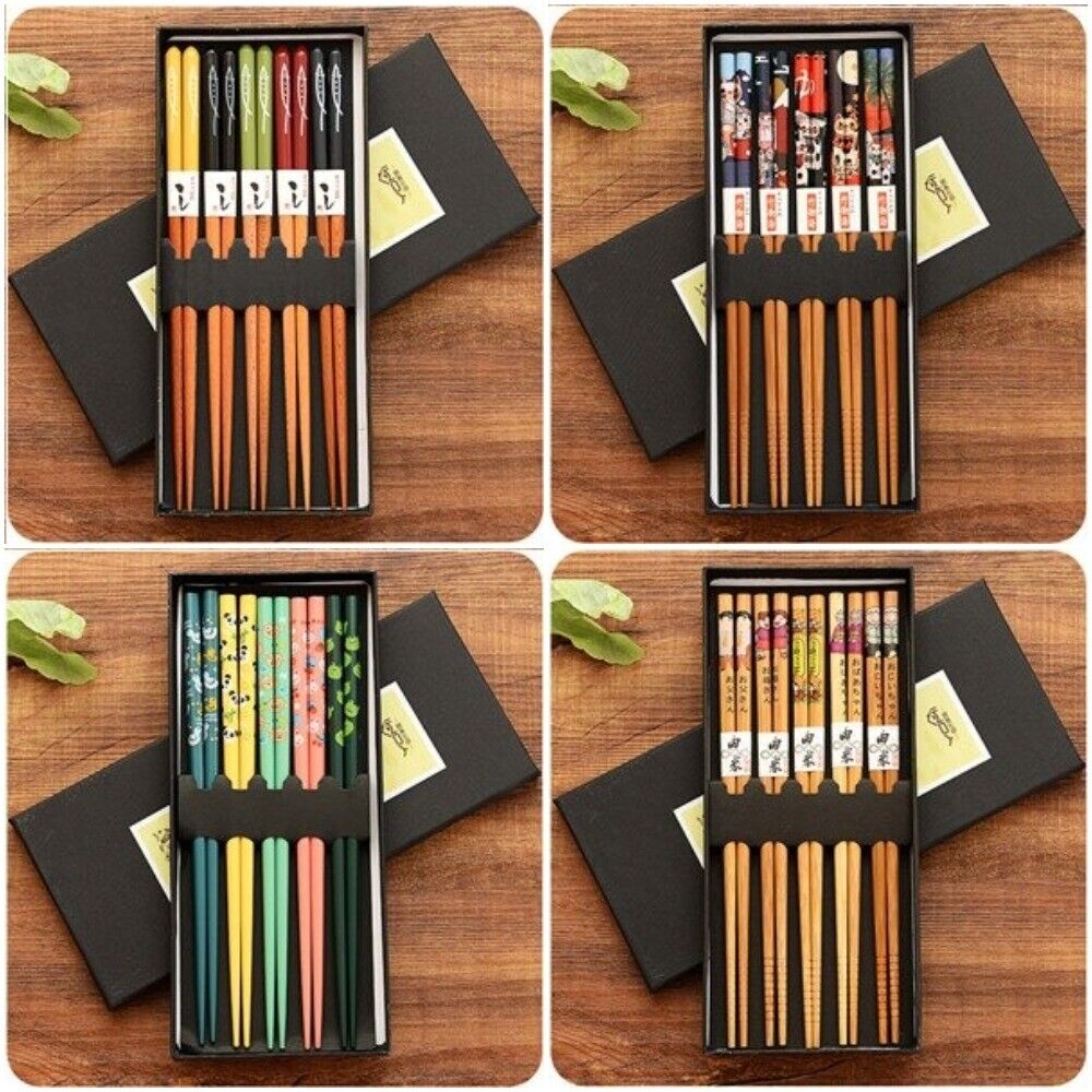 5 Pairs/Set Japanese Style Bamboo Wooden Sushi Chopsticks Tableware Eating Tools