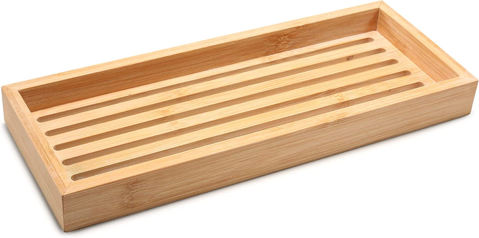 Natural Bamboo Vanity Tray Wooden Bathroom Organizer Counter Top Cosmetics Decor