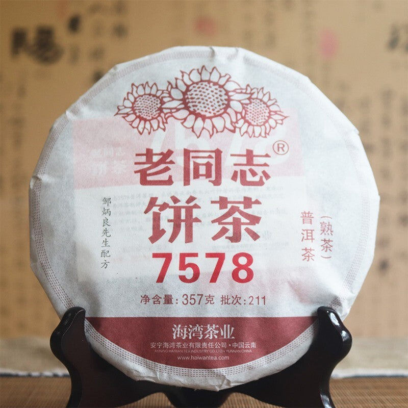 Menghai Haiwan Tea 2021 China Puer Tea 7578 Batch 211 Ripe Pu Erh Cake,老同志 357g