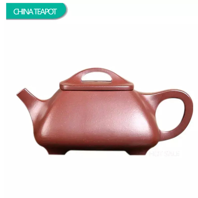 260ml Chinese Yixing High-end Purple Clay Teapots Handmade Square Stone Scoop Tea Pot Raw Ore Purple Mud Kettle Zisha Tea Set