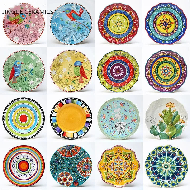 8 Inch Round Hand-painted Flower Ceramic Plate Fruit Salad Plate Dessert Steak Cuisine Kitchen Storage Decorative Tableware 1pc