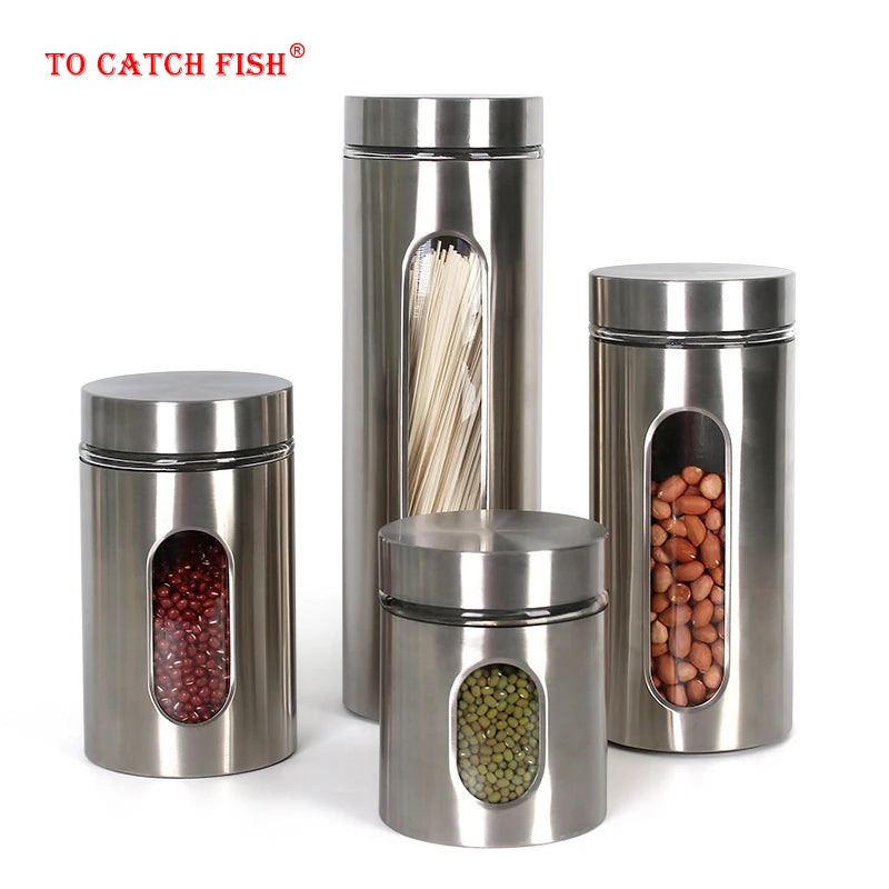 Kitchen Food jar Sealed Cans Household Glass Covered With Transparent Jar tea Miscellaneous Grain Storage stainless steel Cans