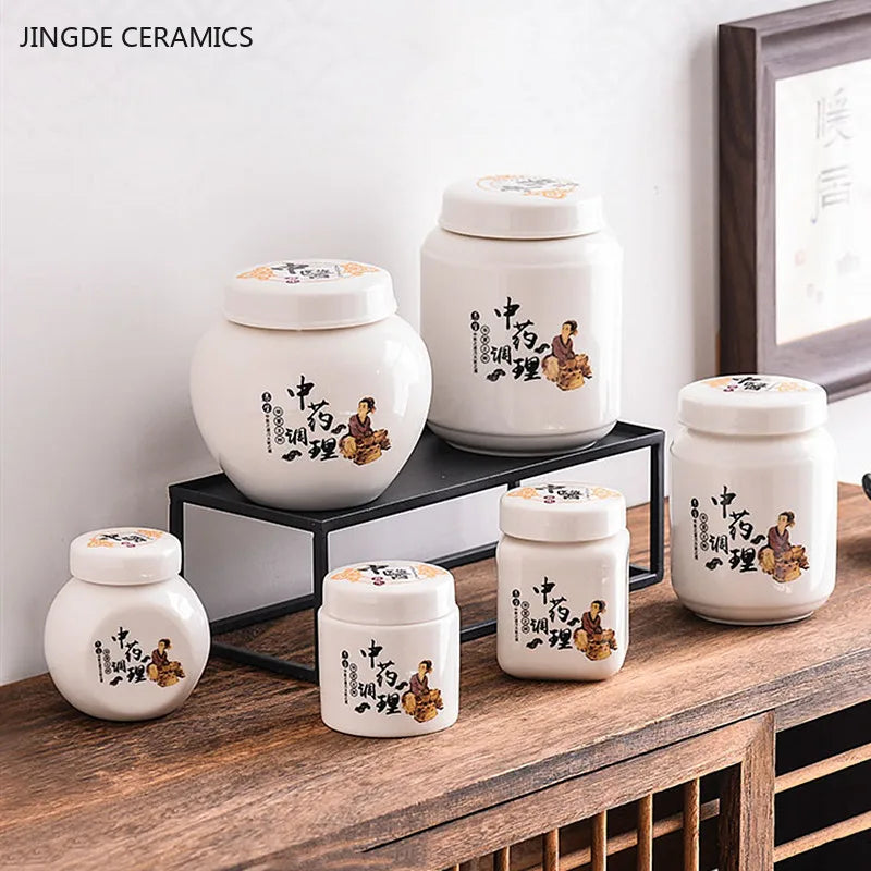 Home Sealed Tea Jar Coffee Powder Canister Chinese Ceramics Tea Caddy Travel Tea Bag Kitchen Spice Containers Candy Storage Tank