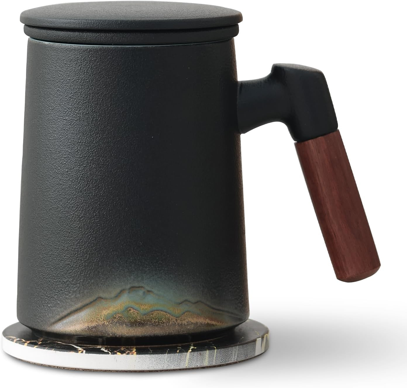 Handmade Ceramic Tea Cup with Infuser & Lid Mug with Bamboo Handle Kitchen Decor