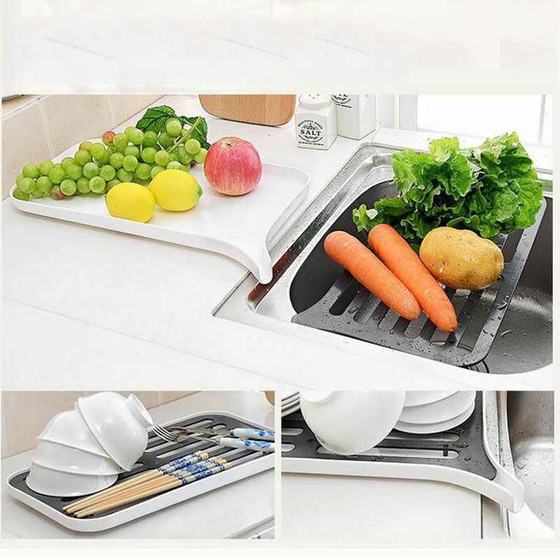 Kitchen Dish Drainer Drain Rack Plastic Dryer Tray Large Sink Drying Worktop PP