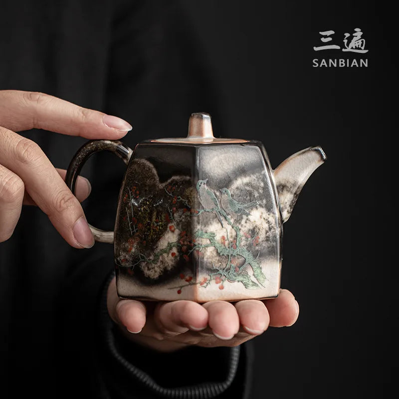 Japanese-Style Hand-Painted Vintage Landscape Teapot Handmade Antique Ceramics Tea Making Single Teapot Household Kombucha