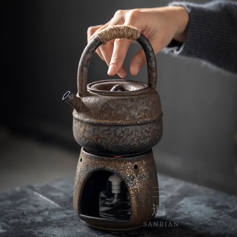 Three Times Japanese Style Coarse Pottery Tea Brewing Pot Creative Retro Rust Glaze Loop-Handled Teapot Ceramic Large Alcohol