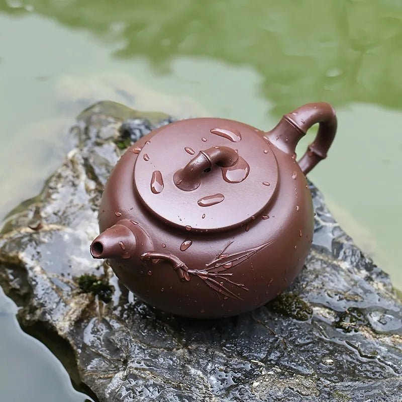Zanghutianxia Large Capacity Yixing Zisha Teapot Handmade Applique Bamboo Zisha Tea Set Raw Ore Purple Clay High-Grade Teapot Gr
