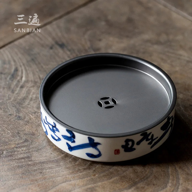 Hand Drawn Tea Shi Cao Mu Gray Pot Tray Water Storage Tea Table Yixing Clay Teapots Support Ceramic Pot Mat Small Tea Table Ji