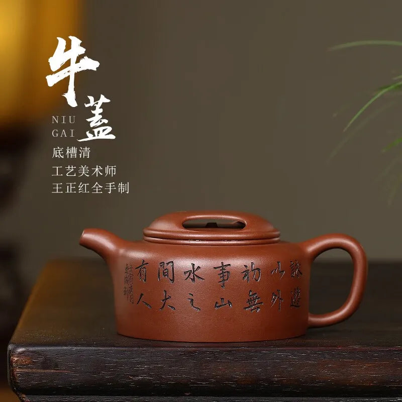 Zanghutianxia Yixing Zisha Teapot Handmade Carved High-Grade Zisha Tea Set Raw Ore Bottom Trough Clear Handmade Teapot Cow Cover