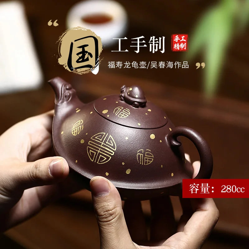Yixing purple clay teapot is a pure handmade teapot with inner wall decorated with Kung Fu Tea