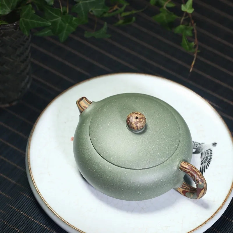 Zanghutianxia Purple Clay Pot Handmade Yixing Raw Ore Green Beans Sand Twisted Mud Large Mouth Flat Xi Shi Small Capacity Teapot