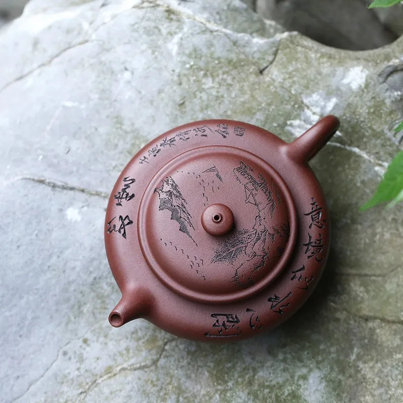 Zanghutianxia Yixing Purple Clay Pot Handmade Carved Kung Fu Tea Set Raw Ore Bottom Trough Clear Household Teapot Mirror Drum Mi