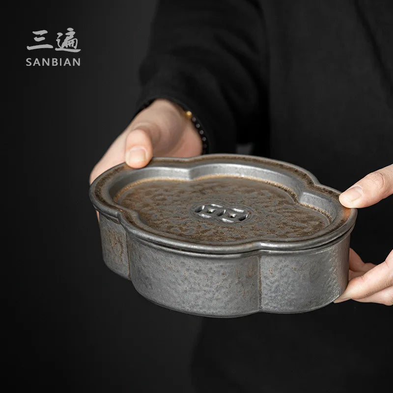 Japanese Household Ceramic Gilding Pot Tray Drain Teapot Platform Gupu Begonia Simple Small Size Water Storage Tea Tray Teapot