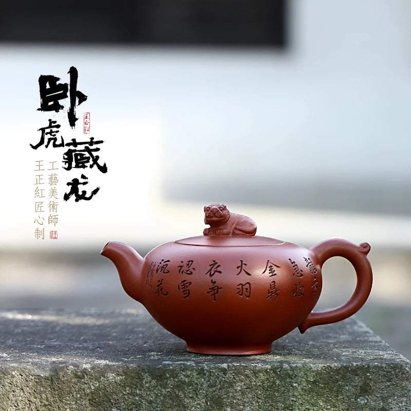 Zanghutianxia Yixing Purple Sand Pot Hand-Carved High-Grade Purple Sand Teaware Single Pot Raw Ore Red Skin Dragon Teapot Crouch