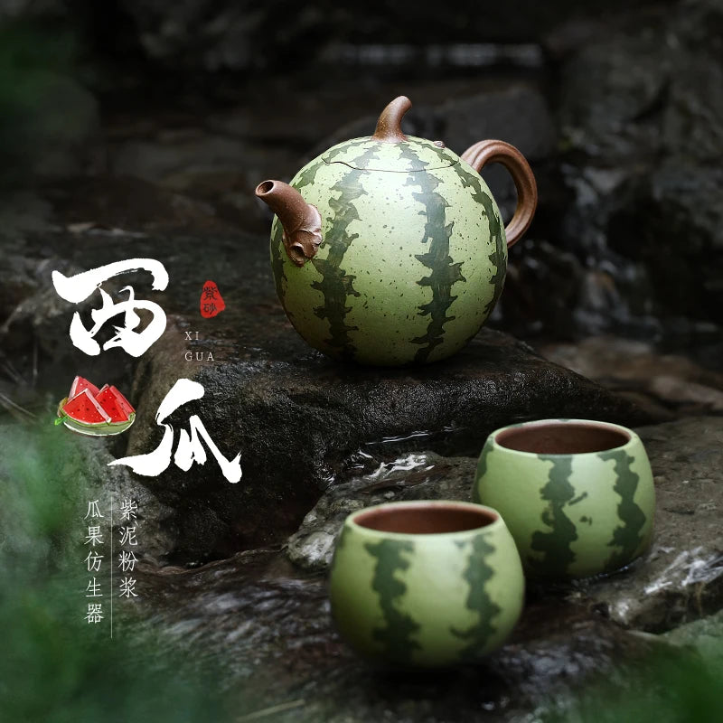 Zanghutianxia Yixing Zisha Teapot Bionic Watermelon Teapot Tea Set Handmade Flower Teapot Zisha Teapot Watermelon Pot One Pot Tw