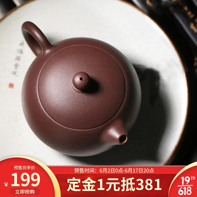 Yishuitang Yixing original handmade purple clay teapot with flat bottom and stone ladle lid 175ml household teapot