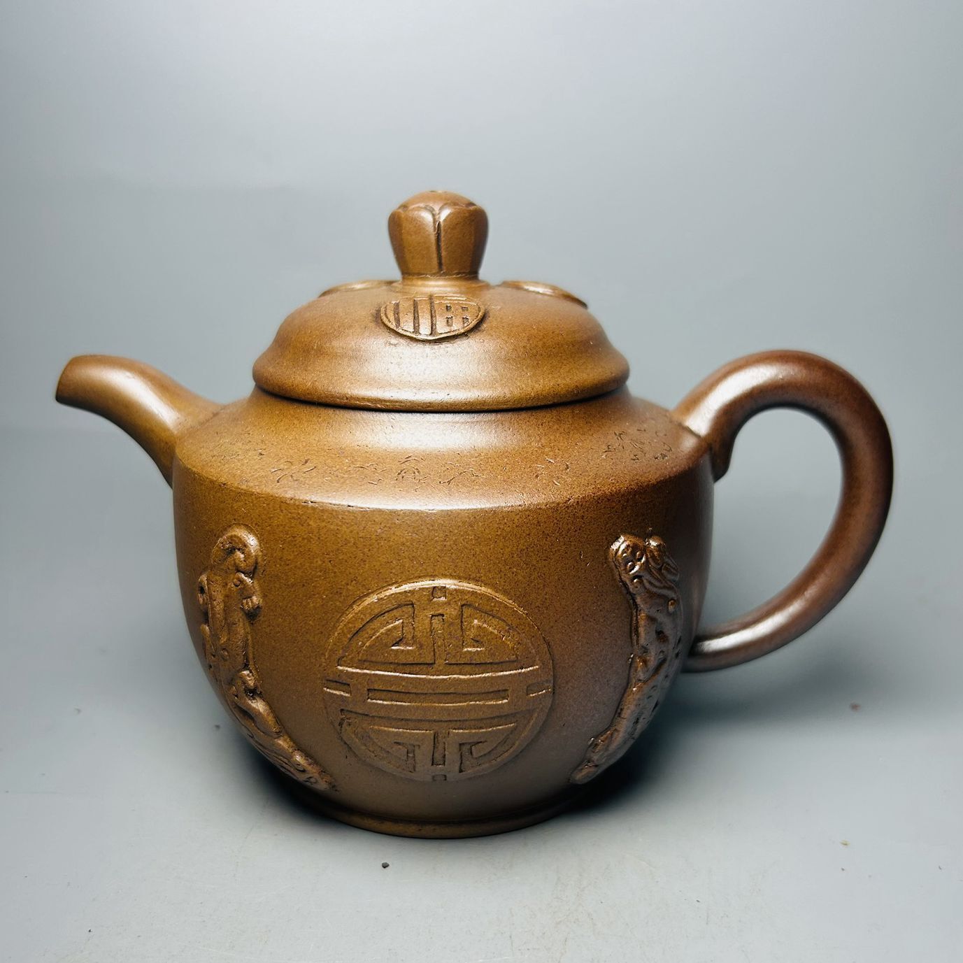 Vintage Chinese Yixing Purple Clay Teapot Zisha Ceramic Carving Dragon Teaware