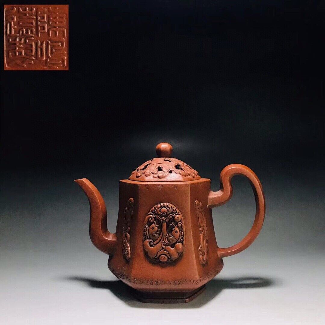 Vintage Chinese Yixing Purple Clay Teapot Zisha Ceremony Carving Collectible Art