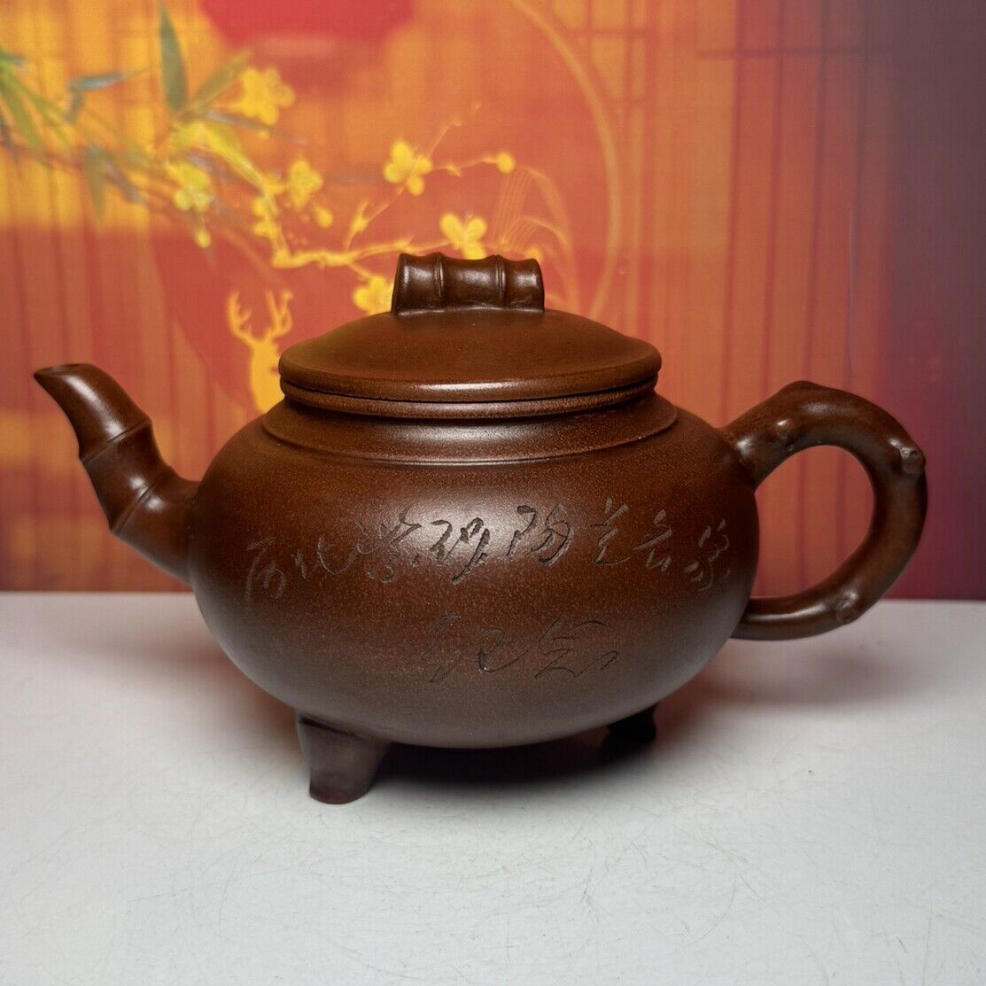 Vintage Chinese Yixing Purple Clay Teapot Zisha Ceremony Ceramic Bamboo Teaware