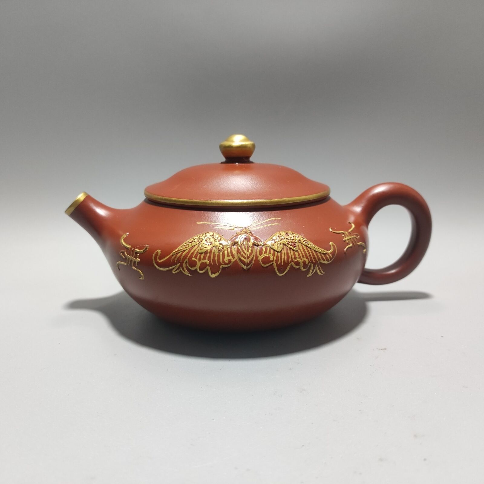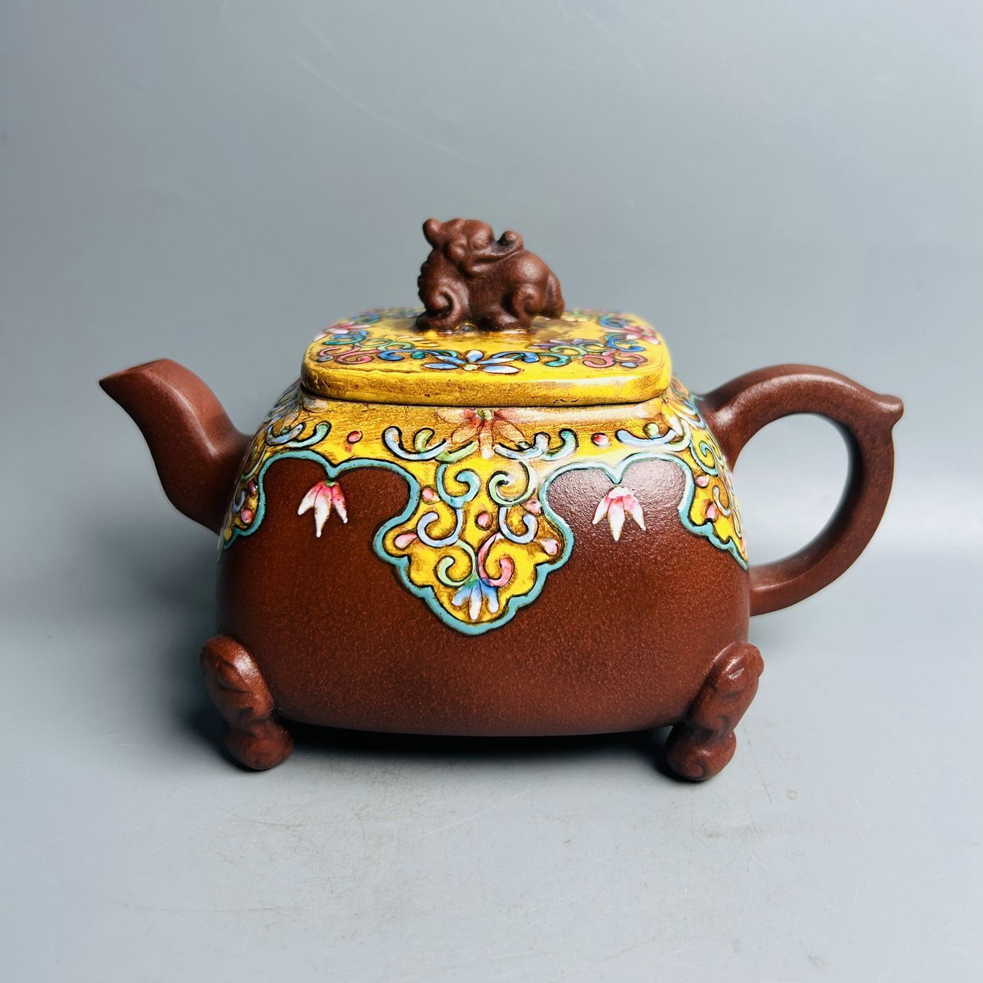 Vintage Chinese Yixing Purple Clay Teapot Zisha Ceremony Enamel Fine Teaware Art