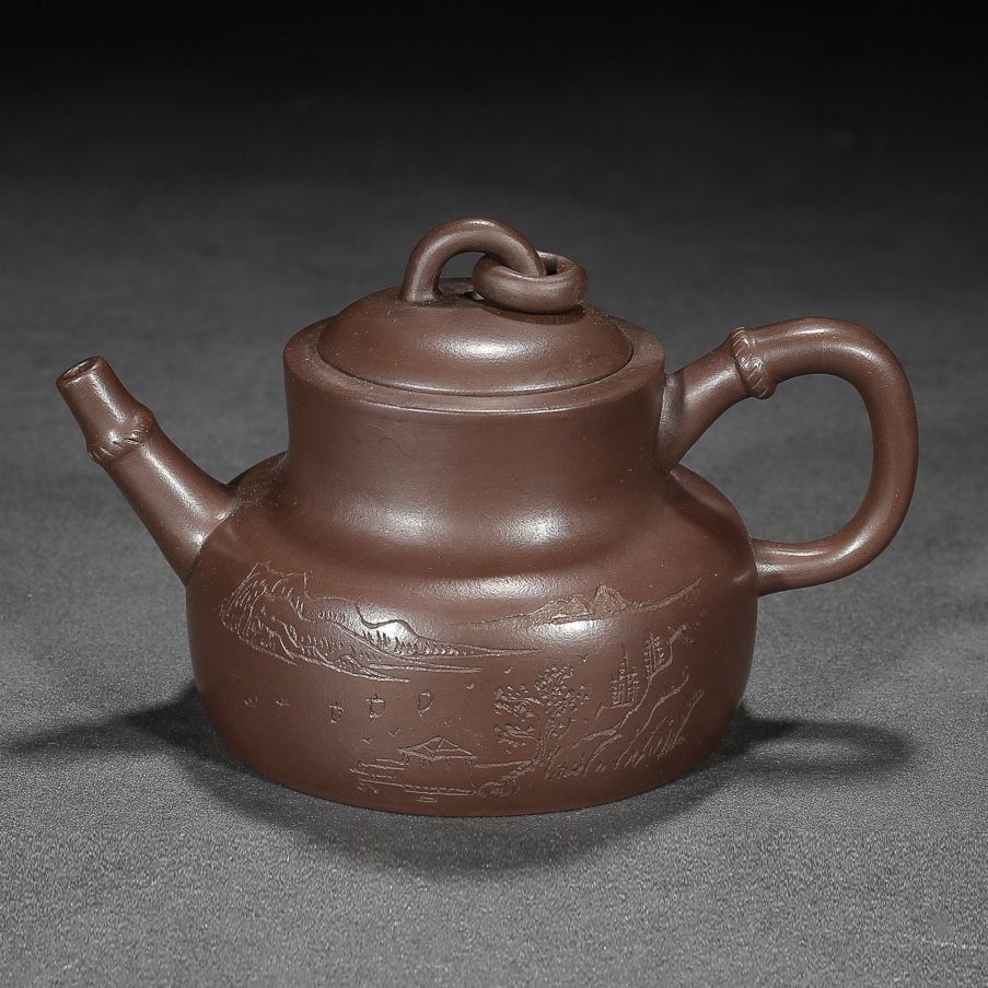Chinese Yixing Purple Clay Teapot Zisha Ceramic Landscape Teaware Collection Art