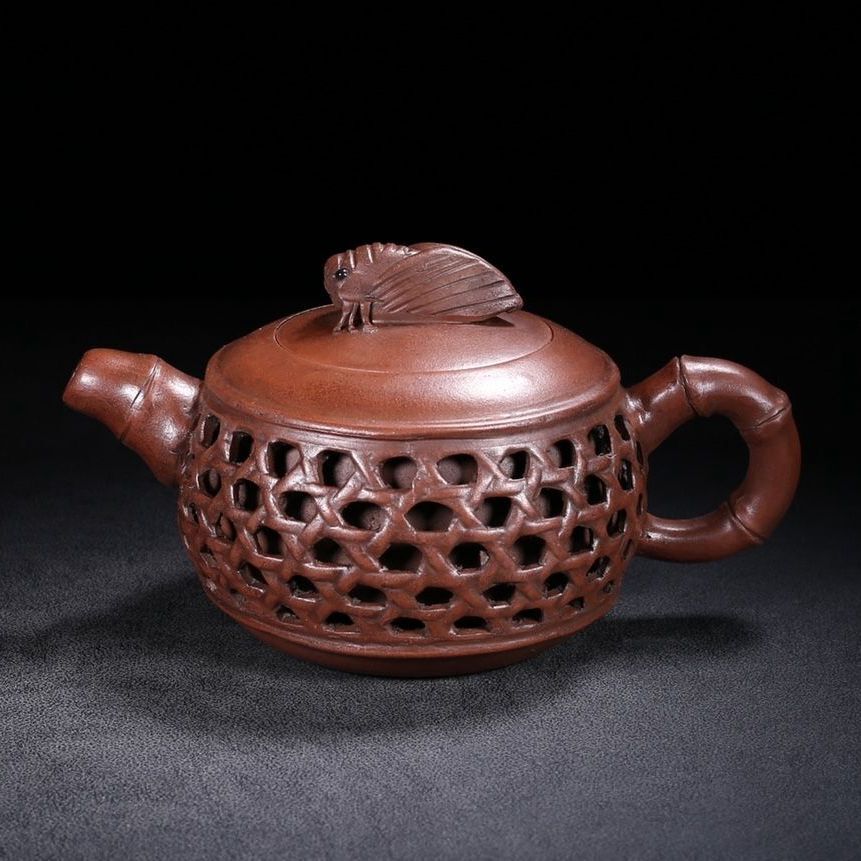 Vintage China Yixing Purple Clay Teapot Zisha Ceramic Carving Exquisite Teaware