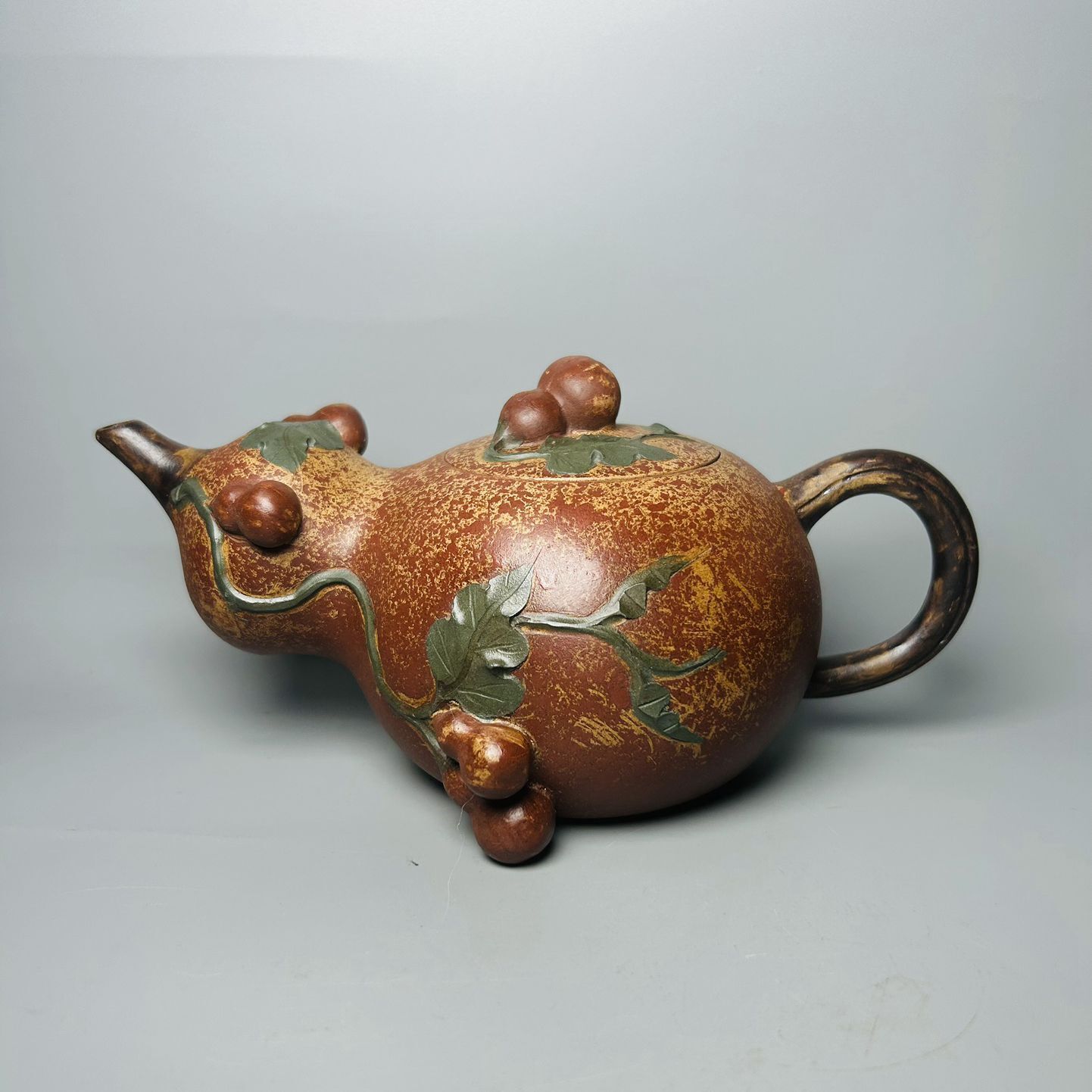 Vintage Chinese Yixing Purple Clay Teapot Zisha Ceremony Ceramic Gourd Teaware