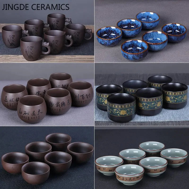 6pcs Chinese Handmade Purple Clay Tea Cup Travel Pu'er Teacup Zisha Tea Set Water Cup Household Drinkware Tea Accessories