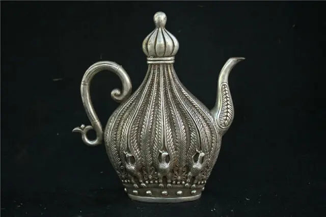 9" Tibet Silver Copper Cupronickel Peacock Teapot Kettle Statue W qianlong Mark