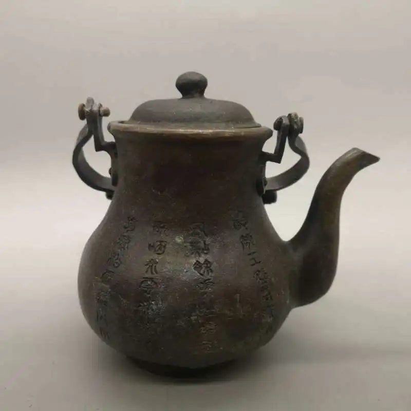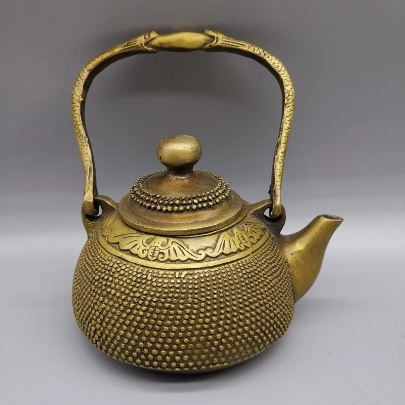 Chinese Pure Brass Old Copper Teapot Statue