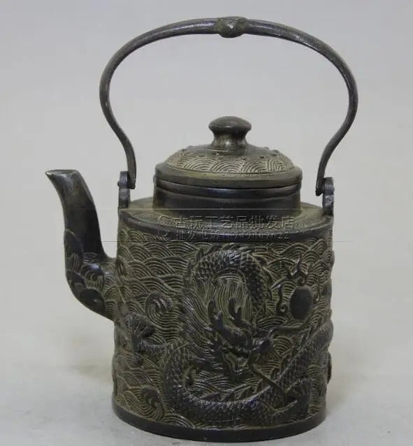 Old Collection Ancient Tibetan Brass Chinese Hand Graving Dragon Teapot Kettle Statues et Sculptures Collection Ornaments